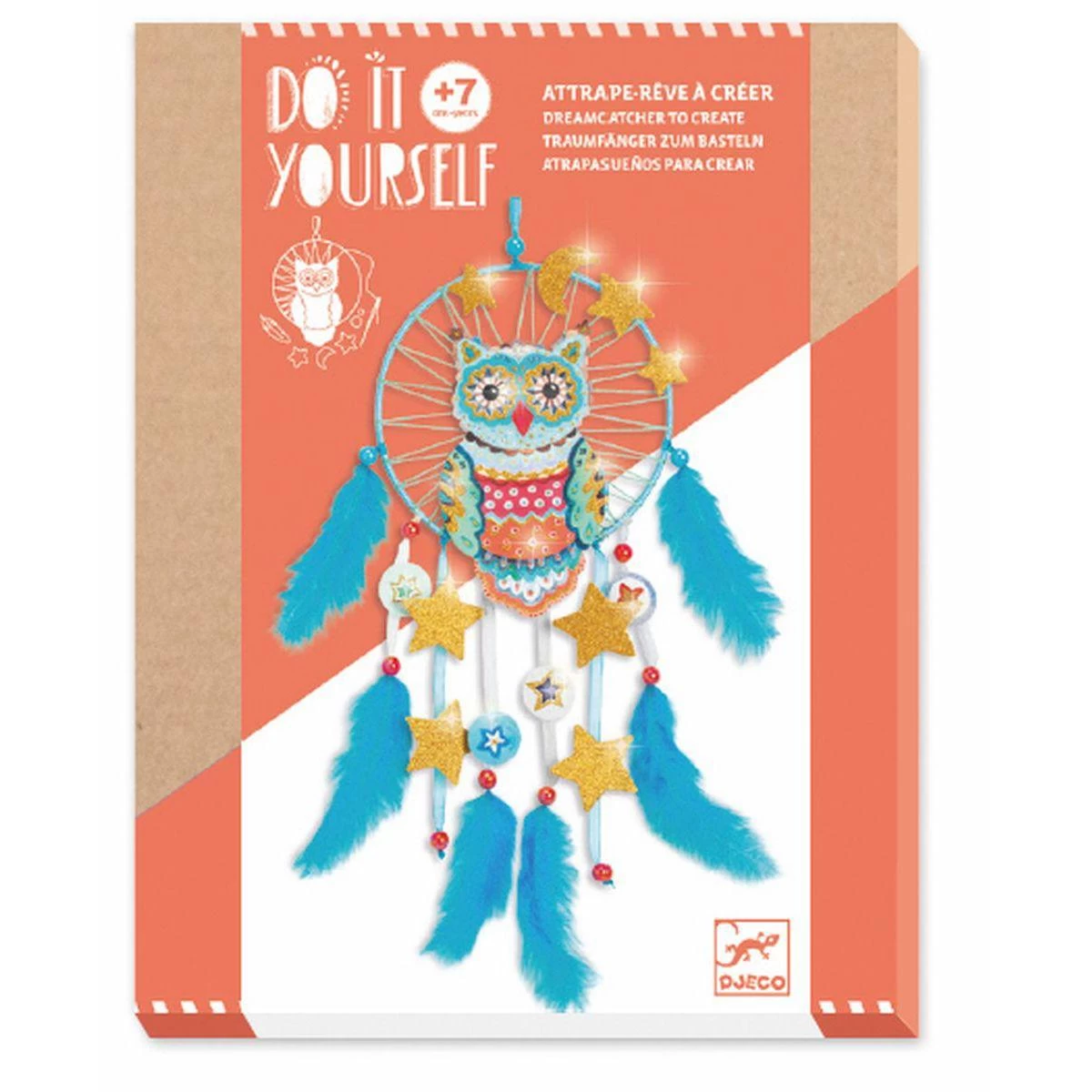 Un kit créatif complet pour réaliser un attrape-rêve scintillant, en ornant l’image de la chouette de fils colorés, de perles, de rubans, de plumes. Un bel objet de décoration à suspendre dans sa chambre pour éloigner les mauvais rêves…