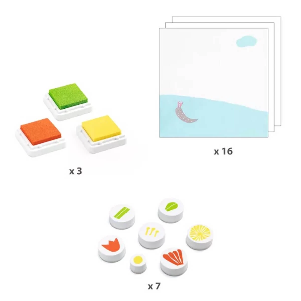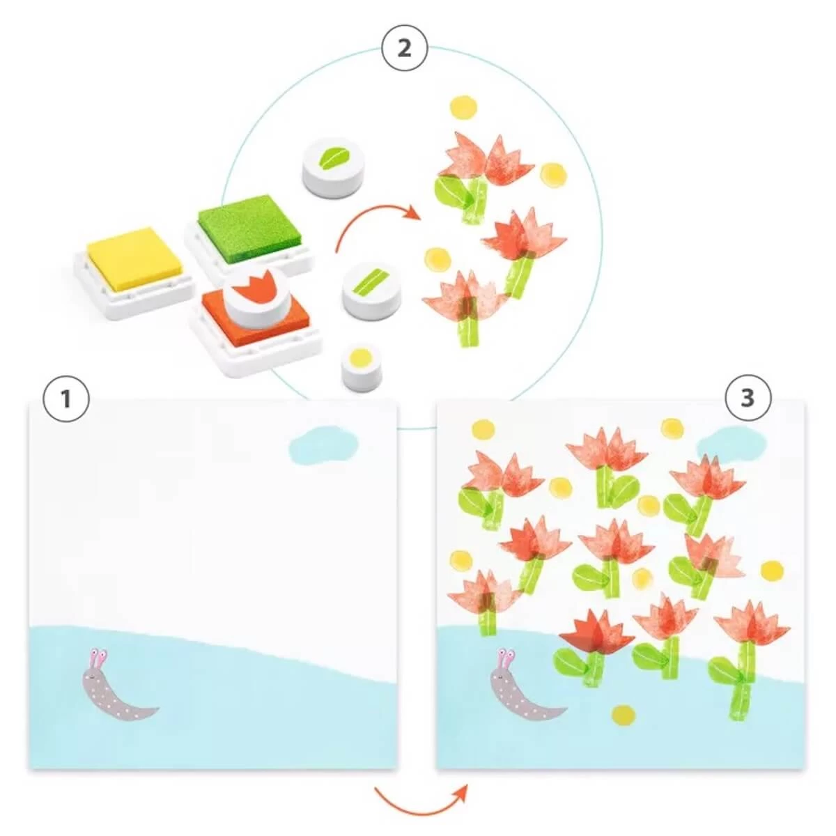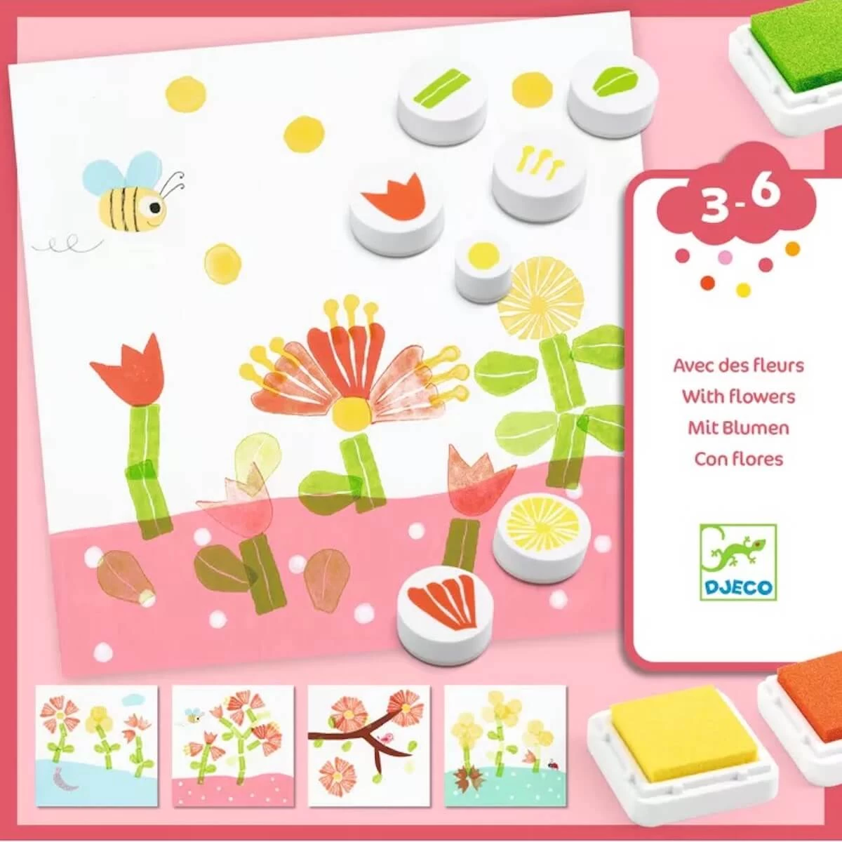 Coffret tampons Avec des fleurs de Djeco, dès l’âge de 3 ans.