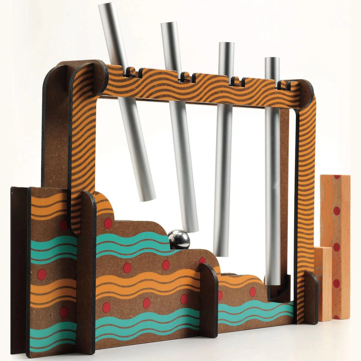 Un grand set de jeu de réaction en chaîne, de réflexion et de construction en bois sur le thème de la musique et des sons. Gong et dring ! L’enfant suit les 3 modèles du livret pour construire son parcours ou en imagine d’autres à l’infini. Ce jeu à partir de 7 ans est compatible avec tous les coffrets de la collection pour inventer des parcours action-réaction encore plus ingénieux!